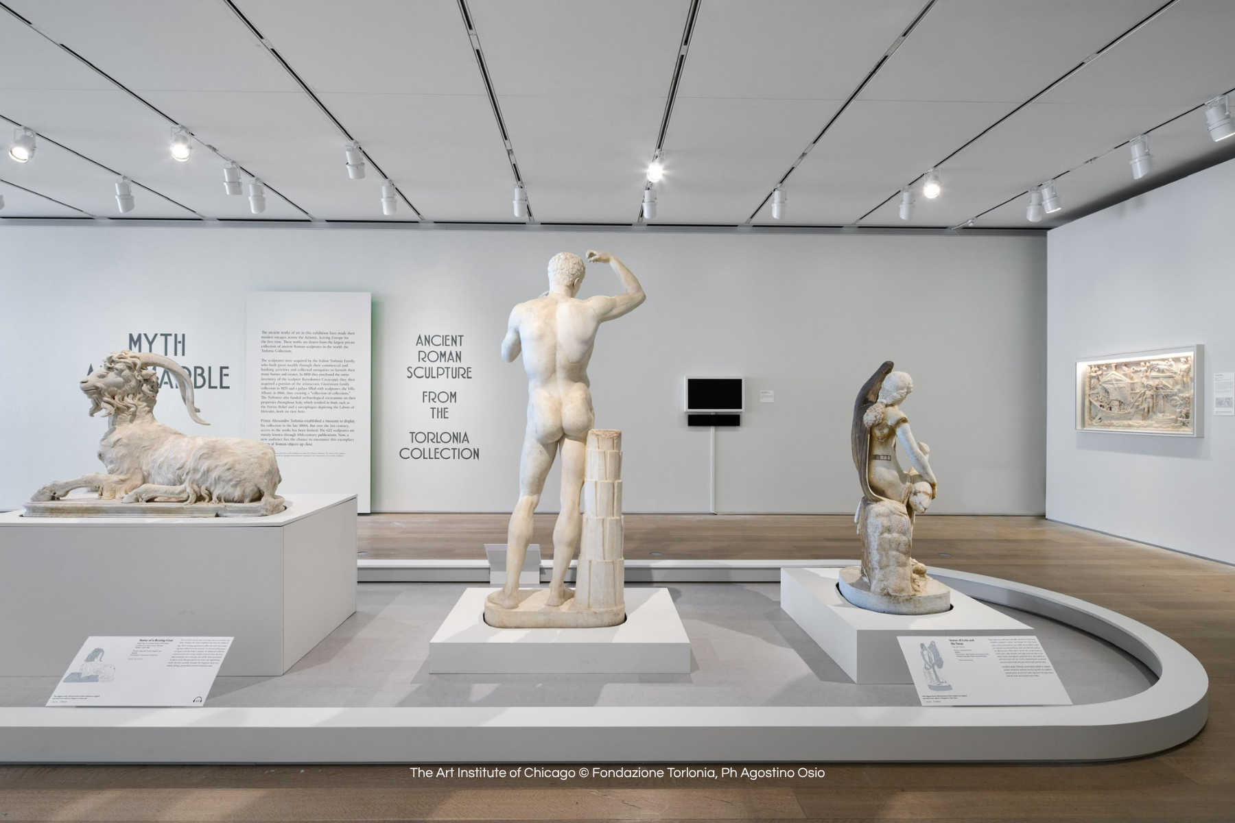 The exhibition "Myth and Marble: Ancient Roman Sculpture from the Torlonia Collection" features 58 masterpieces of ancient Roman sculpture, including busts, mythological figures and sarcophagi, with 28 works specially restored for the exhibition with the support of the Bulgari Foundation. The exhibition has been opened overseas since March 2025 during a tour involving Canada and the United States, aimed at making what is considered the most important private collection of Roman sculpture in the world accessible to the North American audience. Alongside the exhibition, an important catalogue enriched with stunning unpublished photographs and essays by curators Lisa Ayla Çakmak and Katharine A. Raff, archaeologist Salvatore Settis and Silvia Beltrametti, a specialist in art and cultural heritage law, is available.