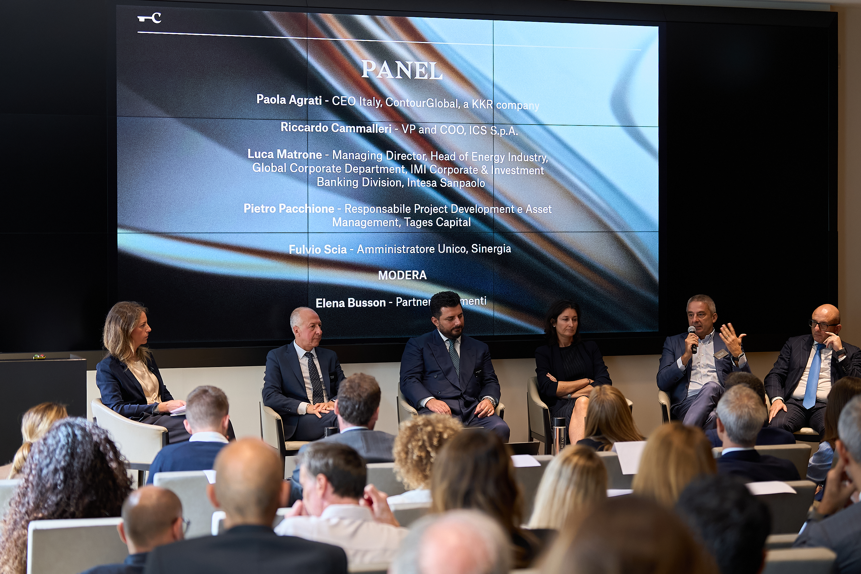 The second roundtable, dedicated to investors, developers, and financiers, was moderated by Elena Busson, Partner, who highlighted how essential it is to reduce regulatory uncertainties to facilitate agreements between stakeholders who must effectively lead Italy along the path to decarbonization. The debate featured contributions from Paola Agrati, CEO Italy at ContourGlobal, a KKR company; Riccardo Cammalleri, VP and COO at ICS S.p.A; Luca Matrone, Managing Director, Head of Energy Industry, Global Corporate Department IMI Corporate & Investment Banking Division at Intesa Sanpaolo; Pietro Pacchione, Head of Project Development and Asset Management at Tages Capital; and Fulvio Scia, Sole Director at Sinergia.