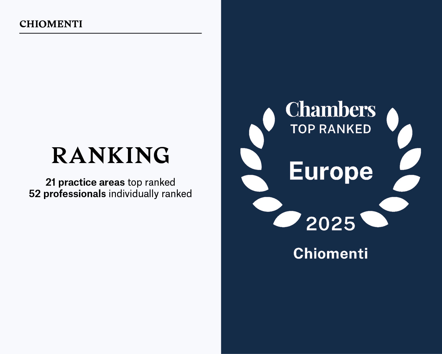 Chiomenti consolidates its positioning in the Chambers Europe Guide 2025, reconfirming its status as Top Ranked law firm in 21 practice areas.