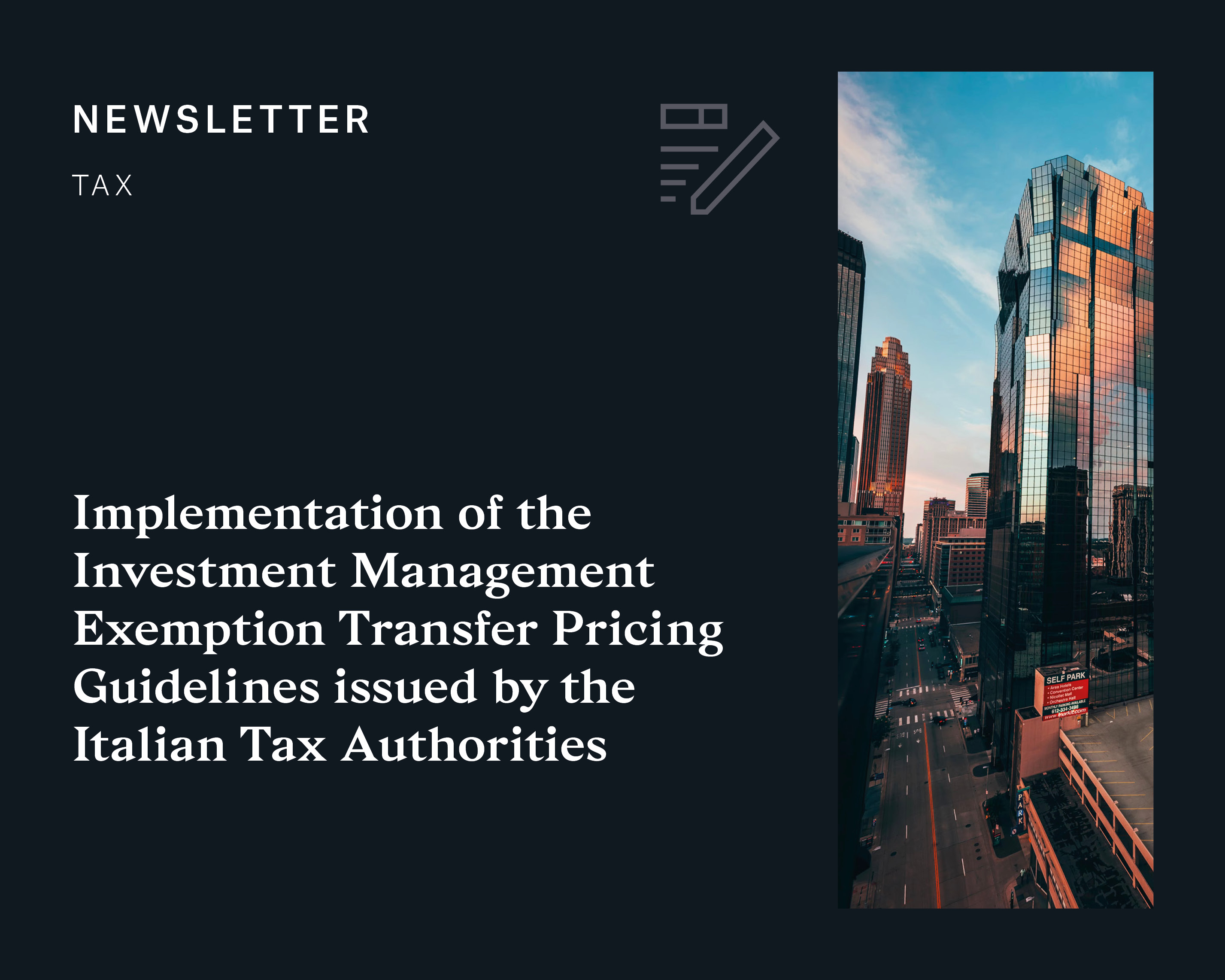 After the introduction of the Investment Management Exemption (IME) in the 2023 Italian Budget Law, on 28 February 2024 the Italian Tax Authority released the transfer pricing guidelines to determine the arm’s length nature of the remuneration received by the asset manager operating in Italy. The final release of the IME TP Guidelines follows a public consultation, where stakeholders provided their feedback on the previous draft of the IME TP Guidelines.