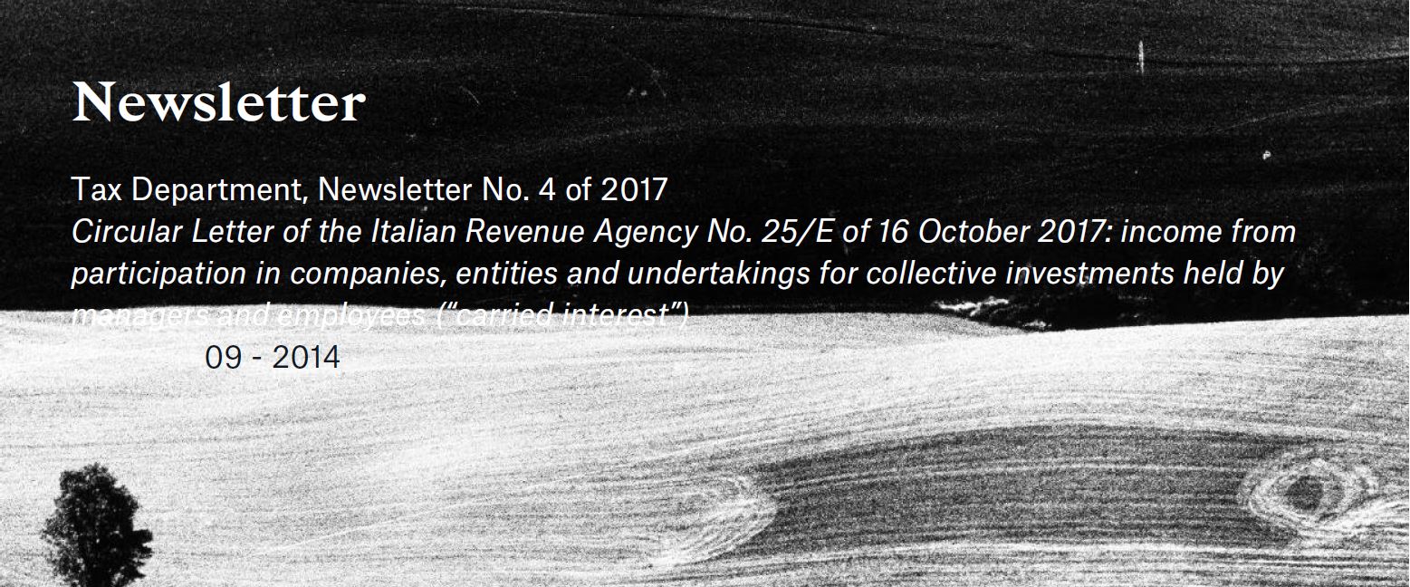 Newsletter Chiomenti n.4/2017: Circolare dell'Agenzia delle Entrate n. 25/E del 16 ottobre 2017: proventi da partecipazioni a società, enti o OICR di dipendenti e amministratori (il cd. carried interest)