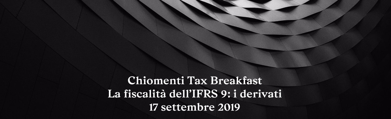 Martedì 17 settembre 2019, ore 9, il Dipartimento Fiscale Chiomenti promuove presso la sede di Milano una Tax Breakfast con focus sui principali aspetti tributari derivanti dall’IFRS 9 con specifico riferimento agli strumenti derivati.