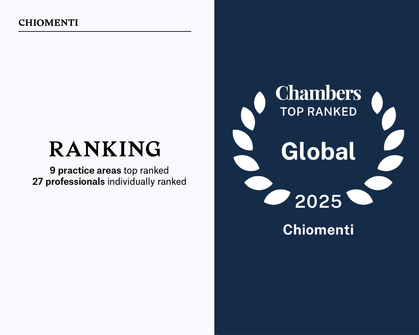 Chiomenti consolida il proprio posizionamento nella Chambers Global Guide 2025, confermandosi "Top Ranked law firm" in 9 practice area.