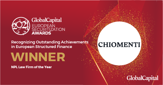 Lo Studio ha ricevuto il prestigioso award internazionale “NPL Law Firm of the Year” assegnato da GlobalCapital European Securitisation Awards per i migliori risultati ottenuti nello European Structured Finance market.