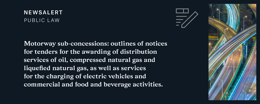 Autorità di Regolazione dei Trasporti: introdotte nuove misure per la definizione dei bandi relativi alle gare cui sono tenuti i concessionari autostradali nell’affidamento delle sub-concessioni. Leggi l'analisi dei Professionisti Chiomenti per un approfondimento sulle più rilevanti previsioni in materia di aree di servizio autostradali e relativi affidamenti.