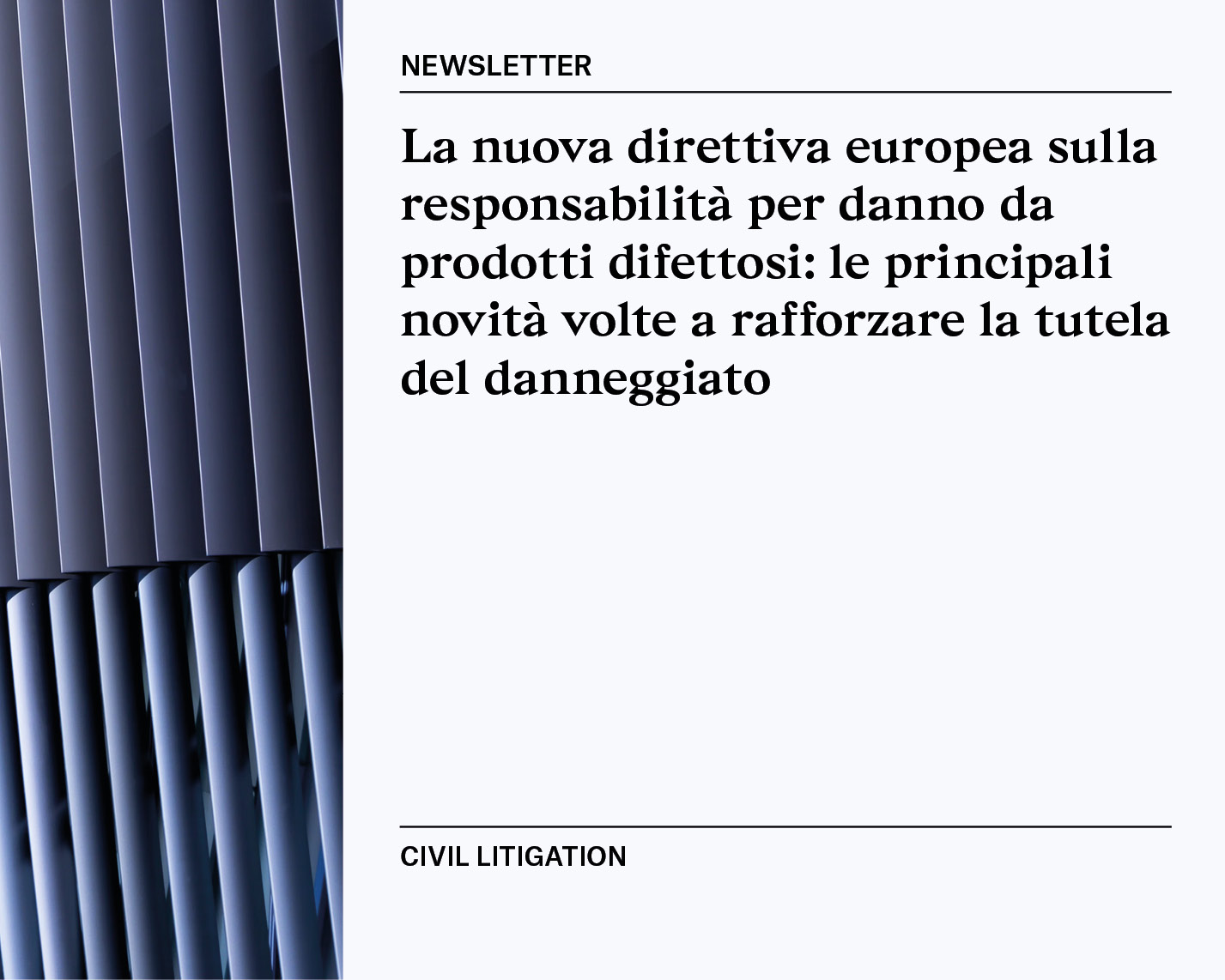I professionisti Chiomenti hanno approfondito le principali novità introdotte dalla Direttiva volte a rafforzare la tutela del danneggiato nell’ultima newsletter.