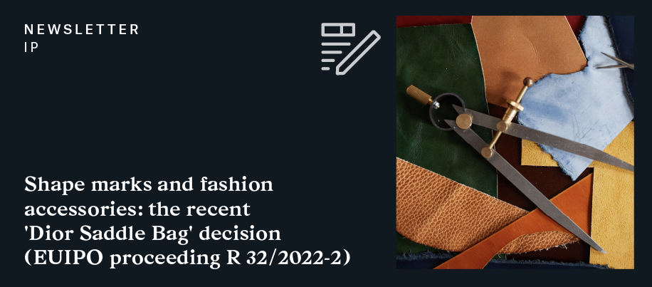I Professionisti IP hanno analizzato i recenti sviluppi relativi alla decisione dell'EUIPO sulla volontà di Dior di registrare la forma della sua “Saddle Bag” come marchio esclusivo a livello europeo. Leggi la Newsletter per una panoramica sul tema.