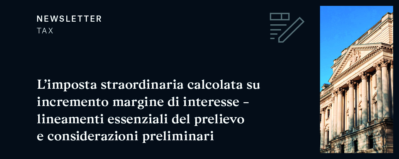 L’imposta straordinaria una tantum a carico delle banche, calcolata sull’incremento del margine di interesse e introdotta con il DL 104/23, è attualmente in fase di conversione al Senato.